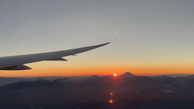 空の上でのご来光を、旅のスタートとともに体験できる貴重な機会です。